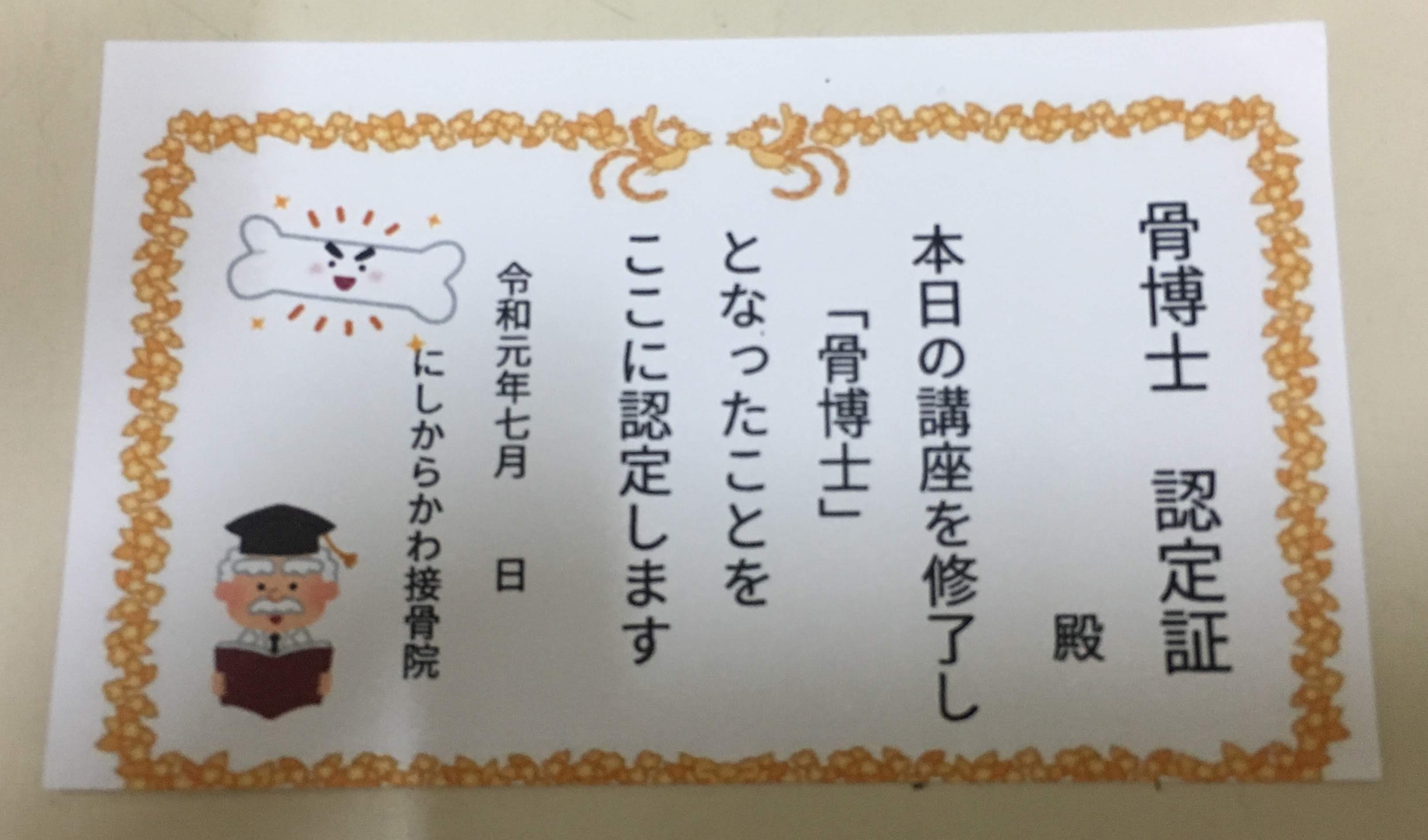 記念品は、「骨博士の認定証」と自分のエコーの画像をわたしました(^o^)