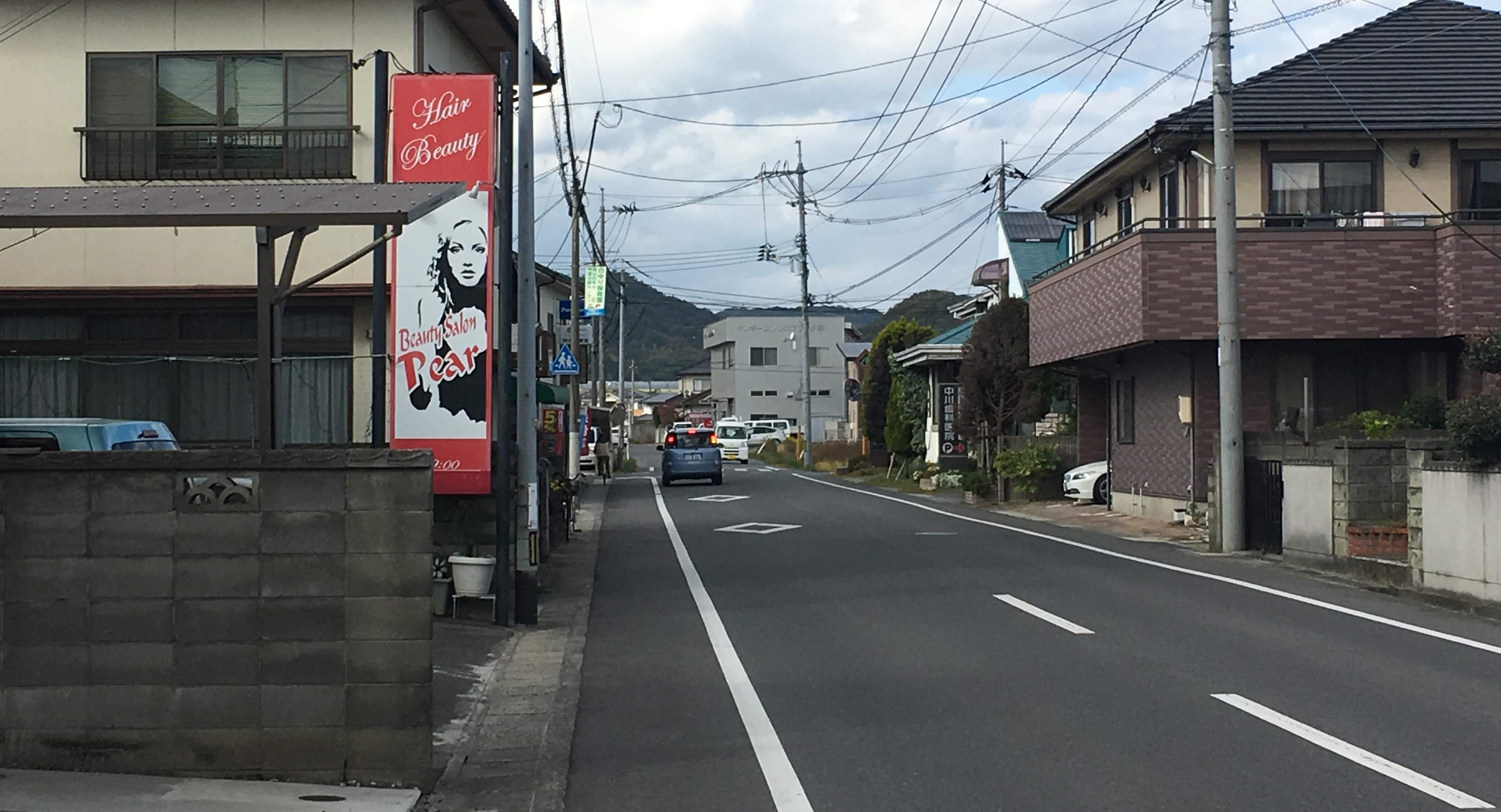 さらに北に進んでいくと、左手に美容室ペアさんの看板があらわれます。