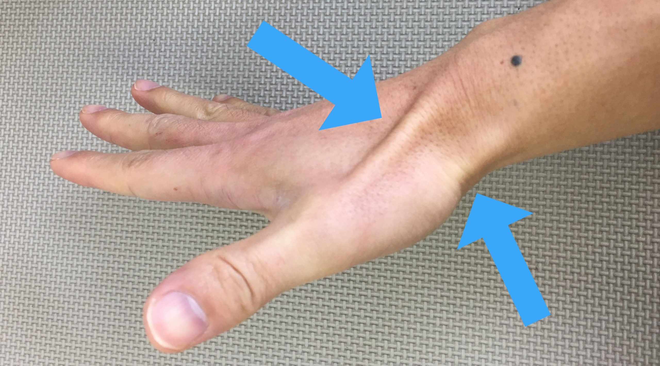 ドケルバン病とは、親指を広げた時に、2本の腱が浮き上がります。その腱と腱を包む腱鞘が炎症を起こした時に起きる腱鞘炎のことです。